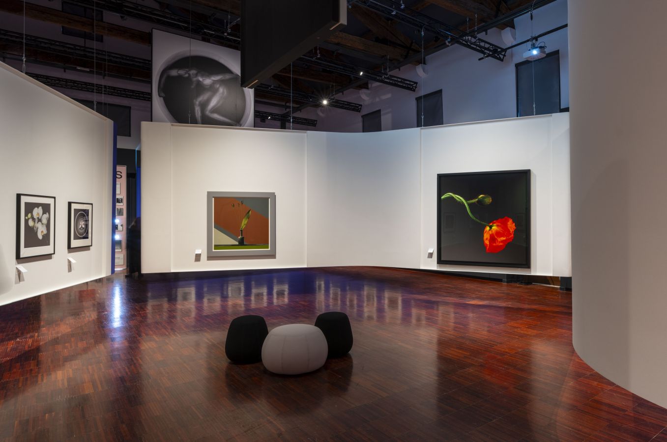 L’allestimento approfondisce il dialogo tra fotografia contemporanea e classicismo, mettendo in relazione la plasticità dei corpi ritratti da Mapplethorpe con la statuaria antica. I nudi maschili e femminili, i ritratti iconici e le celebri immagini di fiori come calle, tulipani e orchidee si trasformano in sculture fotografiche senza tempo, plasmate dalla luce e da una composizione perfetta.